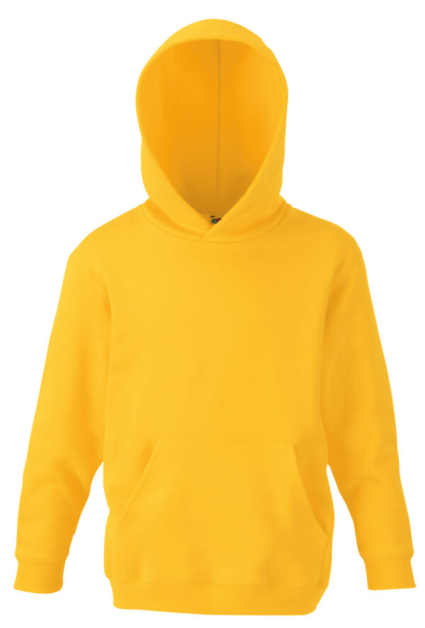 Descrizione: Fettuccia sul collo in single jersey, Cappuccio doppiato senza cordino in conformità con la Legge Europea per l’abbigliamento da bambino, Tasca a marsupio anteriore, Fascia in vita e polsini in cotone/elastane.